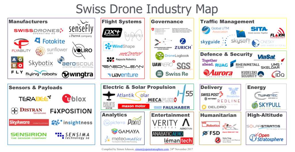UPDATE 03/20/18 17:30 PST: adding a complete map of all the different companies that form part of the Zurich drone community.