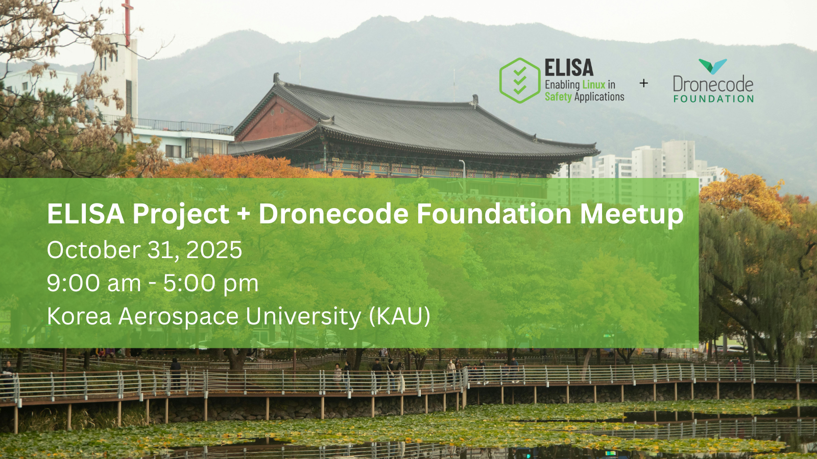 We’re thrilled to announce the next stop in the Dronecode Foundation’s community meetup series. This time, we’re teaming up with the ELISA Project for a one-day, in-person event at Korea…