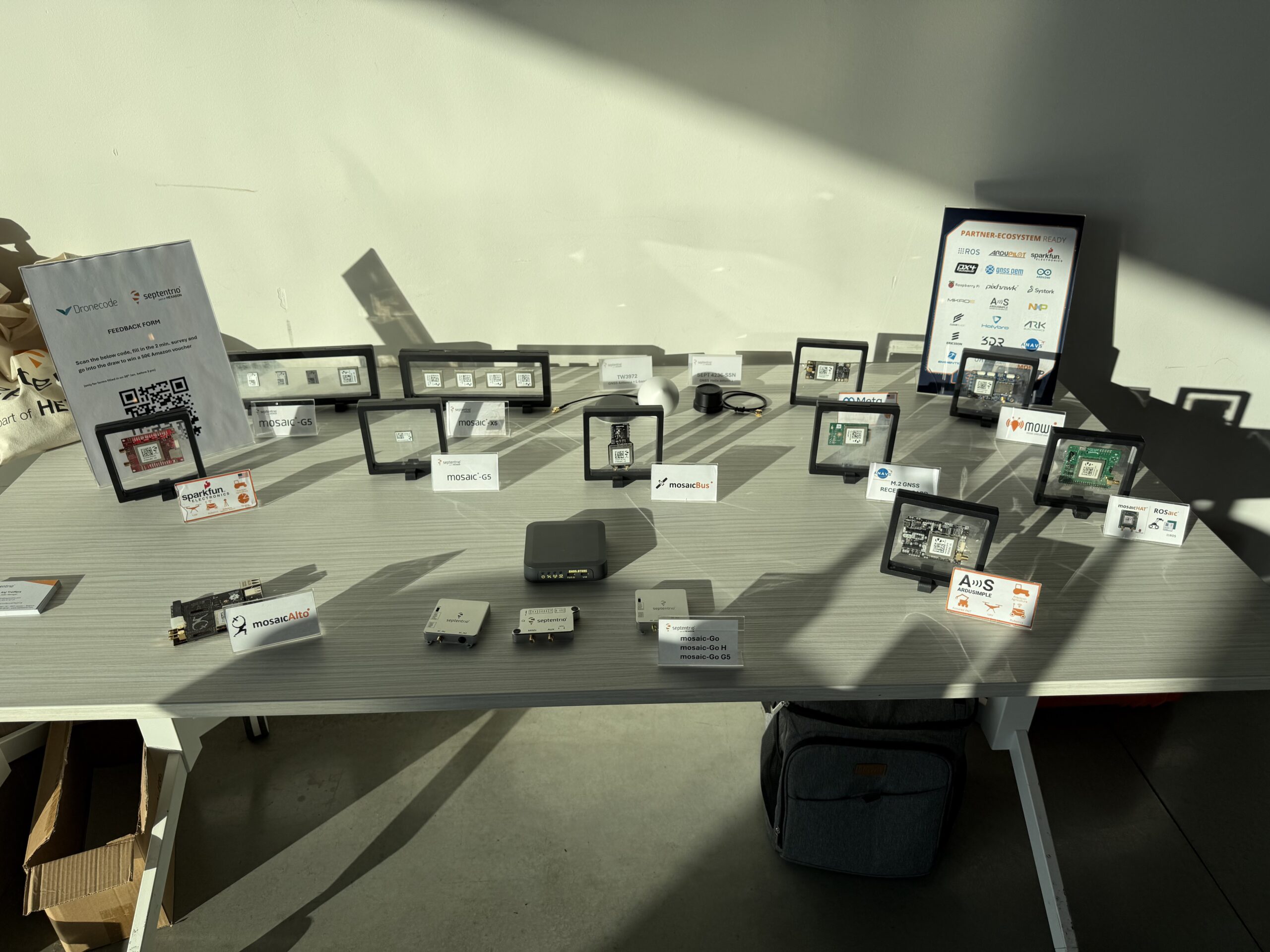 Thank you to everyone who attended, presented, volunteered at the stand, or simply stopped by to say hello. Thanks to Septentrio (part of Hexagon) for sponsoring the Leuven meetup, DeltaQuad for extending the party, The Zephyr Project for sharing the stand, and FOSDEM for making it all possible.