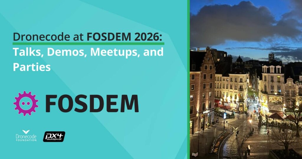 Dronecode is making a big splash at FOSDEM 2026! FOSDEM is one of the largest gatherings of free and open source software developers in the world, drawing over 8,000 attendees to Brussels each year. It’s completely free to attend, no registration required, just show up. The event runs January 31 – February 1, 2026 at the ULB Solbosch campus. With 65+ developer rooms, hundreds of talks, and project stands everywhere, it’s two days of nonstop open source. If you’ve never been, it’s worth the trip.