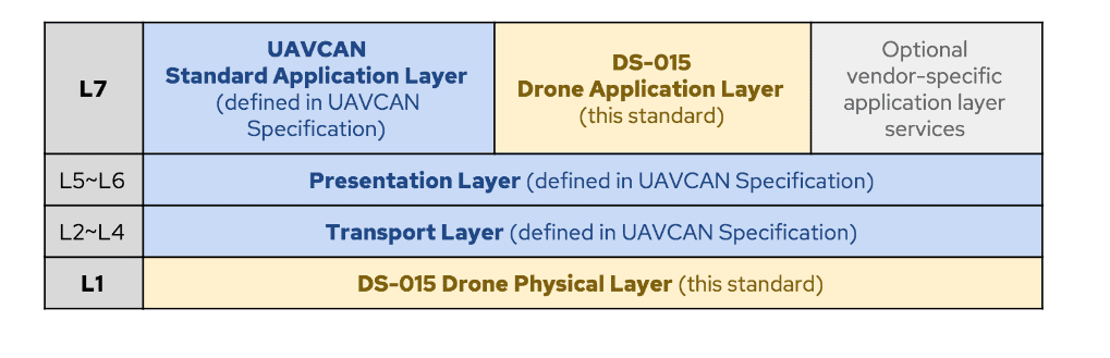 DS-015 UAVCAN Drone Standard, which defines the standardized application layer for drones and the suitable physical connectivity layer optimized for unmanned vehicles using UAVCAN v1 networks, is now available on Github in the Dronecode repository.