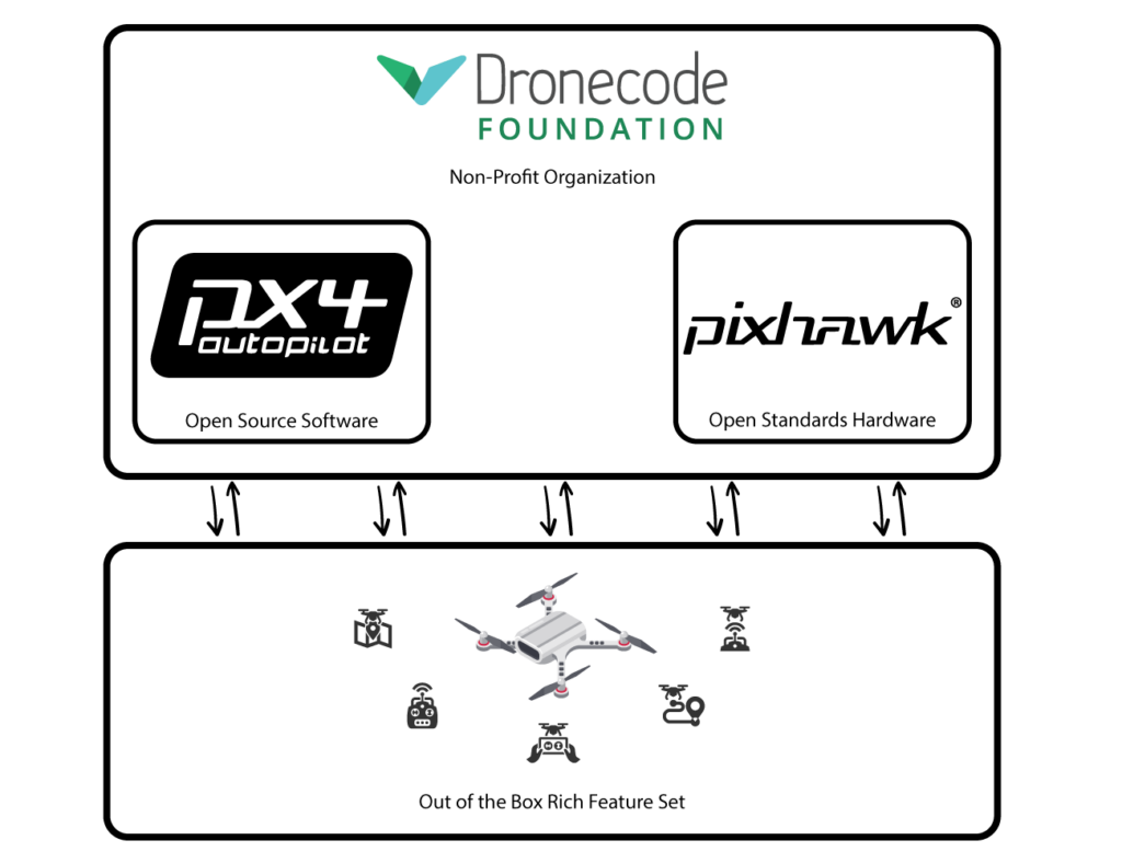 PX4, together with the rest of the projects hosted under the Dronecode Foundation, gives creators a proven solution that can be immediately deployed for prototyping or production. This ecosystem provides an open-source solution for building solutions thanks to its modular architecture, developers can easily add hardware components without requiring major redesigns to the code architecture or losing core functionality.