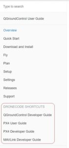 - All the Dronecode Platform documentation libraries now have cross links to the other libraries. This makes it much easier to find related documentation.
